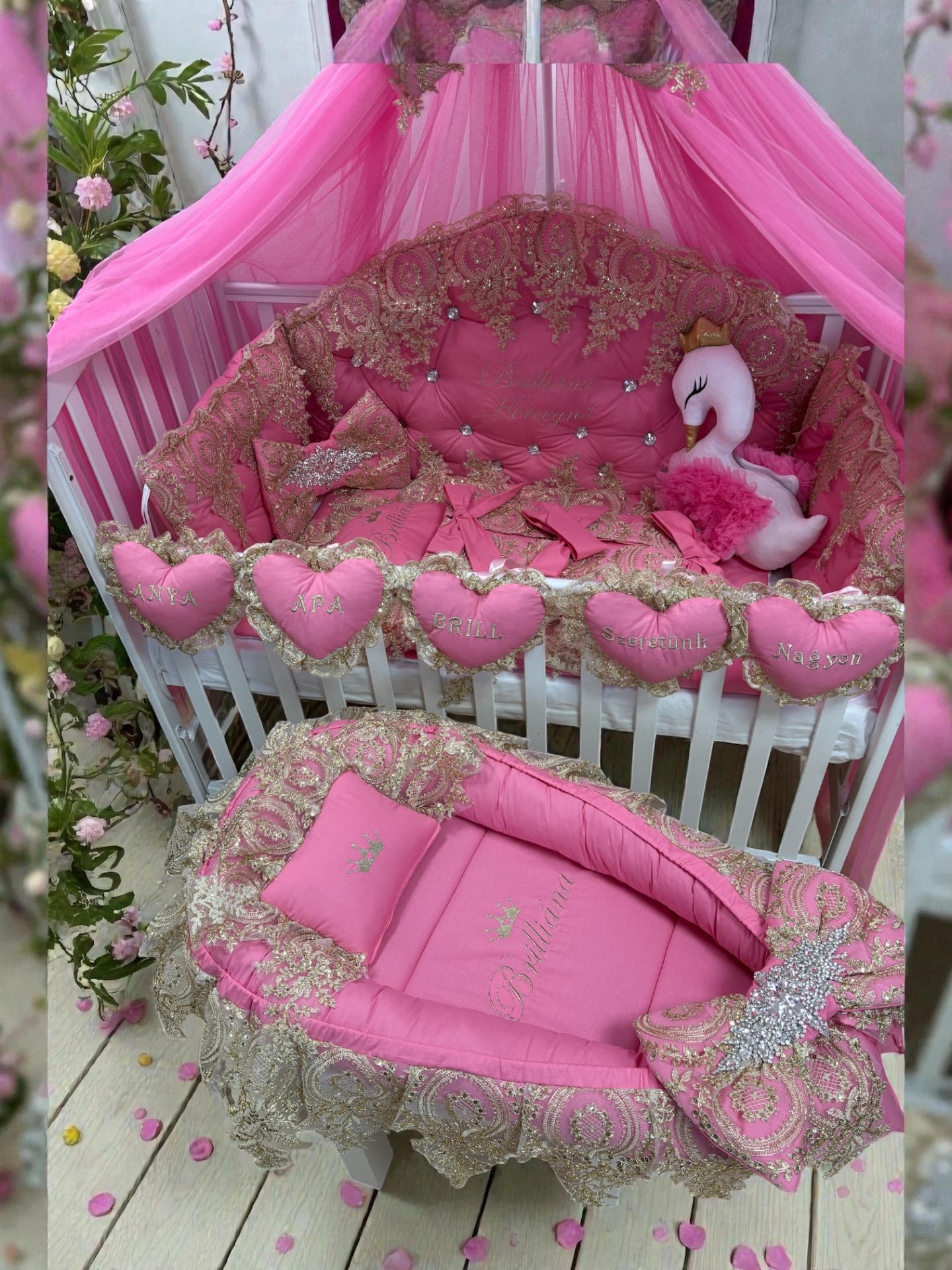 - Arany csipkével és óriás strasszal