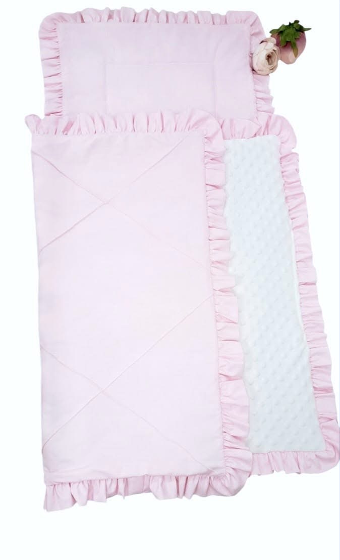 A paplan és a párna egyik oldala prémium minky rövid szálú selymes tapintású plüss anyag és a másik oldala 100% pamut teljes mértékben légáteresztős ,bőrbarát a baba pihentető alvásáért!